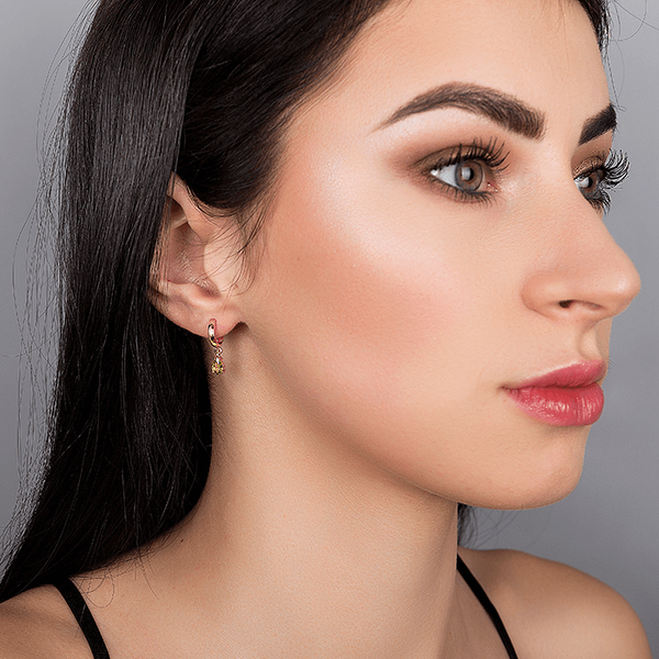 Хрупкие, изящные золотые серьги с невероятно красивым хризолитом, который придаст Вашему лицу больше света и сияния. Такие серьги-капельки отлично сочетаются с высокой прической и любым образом, будь то классический брючный костюм или роскошное летящее платье. Красное золото 585 пробы нежно сочетается с оливковым цветом камня, а английский замок гарантирует прочность и надежность украшения.
