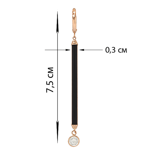Золотые серьги в геометрическом стиле с каучуком и фианитом 031752