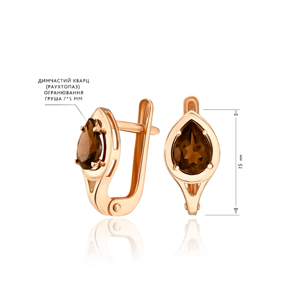 Золотые серьги с грушеобразным дымчатым кварцем 035218