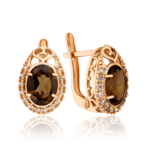 Золотые серьги с дымчастым кварцем и фианитами Экстравагантность 035222
