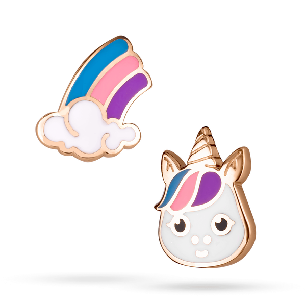 Золотые детские серьги-гвоздики Единорожка и радуга 040067