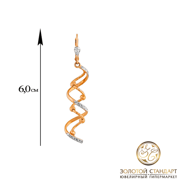 Данные изумительные золотые серьги имеют удлиненную форму. Стилисты рекомендуют носить это замечательное ювелирное украшение с подобранными волосами. Оно позволит выделить изящную шейку своей обладательницы. Следует отметить, что выполнены серьги, которые мы охотно демонстрируем вам на нашем сайте, из красно-белого золота 585 пробы. Лицевая сторона выполнена в виде двух золотистых спиралей с декоративными шариками и серебристыми вставками. Кроме того на внешней части этого ювелирного изделия есть тиснение. Если говорить о фиксации, то тип замка представлен в виде петли.