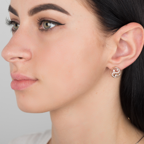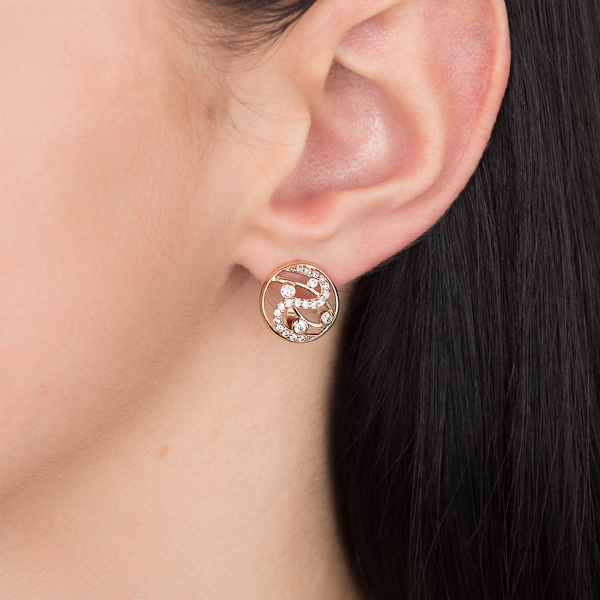Золотые серьги, которые вы имеете возможность видеть на фото, изготовлены из красного золота 585 пробы. Лицевая сторона выполнена в оригинальной форме кольца, внутри которого расположены волнистые линии и сверкающие цирконии. Что касается фиксации, то застегиваются эти серьги английским типом замка. Данное ювелирное украшение будет отличным подарком для каждой женщины, которая любит привлекать восторженные взоры многих мужчин. Надо сказать, что Циркон покровительствует людям, родившимся под знаками Овна и Водолея. Можете сделать такой презент той леди, которая родилась под этим знаком зодиака.