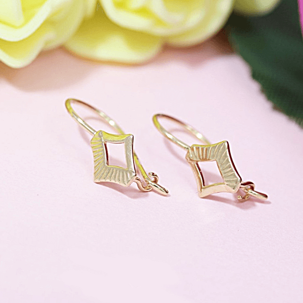 Надо сказать, что выбирая ювелирное изделие в качестве подарка, многие потенциальные покупатели сталкиваются с проблемой достаточно высокой ценовой политики украшений. Однако эти золотые серьги, представленные на нашем сайте, весьма привлекут вас своей оптимальной стоимостью. Изготовлено данное ювелирное изделие, которое вы видите перед собой на фото, из красного золота 585 пробы. Лицевая сторона этого украшения оформлена в виде ромбиков и декорирована тиснением. Если говорить о застежке сережек, то они фиксируются петлей. Эти золотые серьги прекрасно подойдут для уверенных в себе практичных женщин.