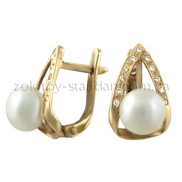 Именно жемчуг делает женщину более женственной, нежной и романтичной. Ювелирное изделие, которые мы Вам с радостью предлагаем на нашем сайте, выполнено из красного золота 585 пробы. Лицевая сторона дополнена круглым натуральным жемчугом белого цвета. Кроме того, изделие украшено сверкающими циркониями, благодаря чему эти серьги будут невероятно мерцать в вечернее время суток. Фиксируются эти золотые сережки английским типом замка. Данные золотые серьги прекрасно дополнят Ваш вечерний наряд и просто бесподобно они будут смотреться в сочетании с роскошным платьем белого цвета.