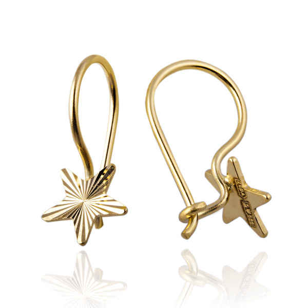 Миниатюрные серьги-звездочки для Вашей маленькой звездочки. С ними даже маленькая девочка почувствует себя принцессой, которой все восхищаются и делают комплименты.  Детские серьги с алмазной гранью выплавлены из красного золота 585 пробы, имеют французскую застежку и выглядят в детских ушах изящно и тонко. Такие сережки можно подарить по случаю ближайшего праздника. А если это первое украшение Вашей маленькой модницы, то такой подарок ей запомнится на многие годы. Если Вы хотите купить детские серьги, то наши выгодные предложения не разочаруют Вас, и Вы останетесь довольны покупкой.