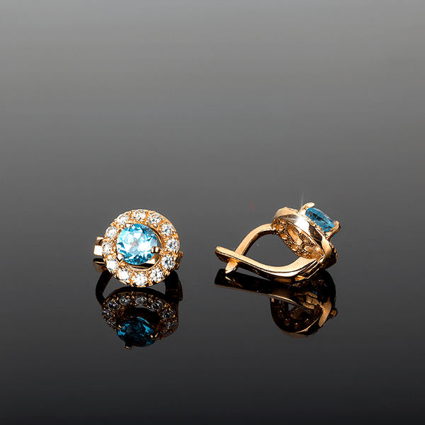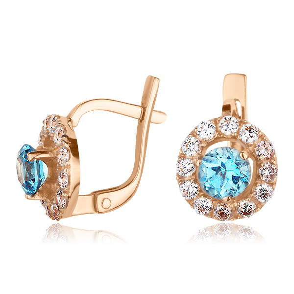 Серьги с топазом выбирают те, кому хочется мерцать в элитном обществе. Те, кто любит моду и стиль, а также те, кто всегда предпочитает классику в одежде. И те, кто уверен в себе и знает, что он хочет от жизни. Сережки, которые мы вам охотно предлагаем на нашем сайте, выполнены из красного золота 585 пробы. Лицевая сторона украшена по центру круглыми вставками с топазом, а по кругу сверкающими камнями циркония. Стоит отметить, что тип замка английский. Серьги весьма практичны для их обладательницы. Приобретая эти серьги вы повышаете свой статус.
