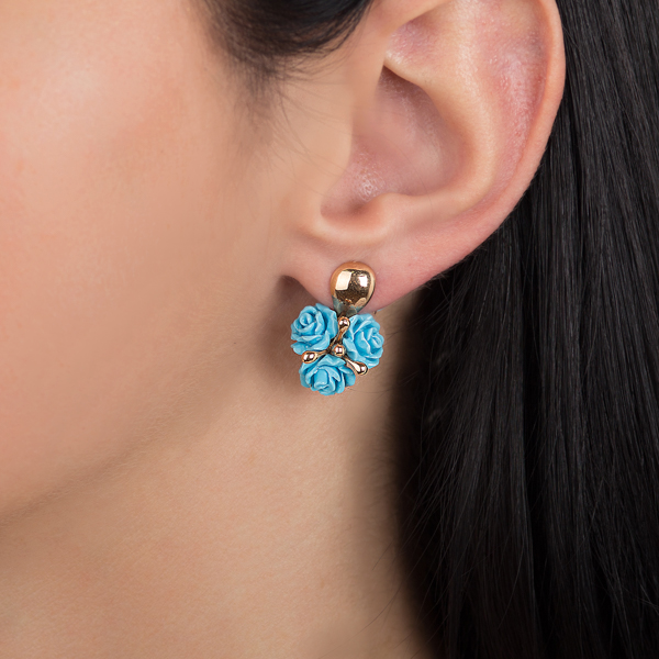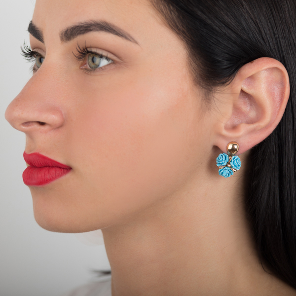 Вы еще та кокетка? Любите яркие наряды и в вашем гардеробе есть ни одно роскошное платье голубого цвета? Тогда эти золотые серьги с кораллом разработаны лучшими стилистами и ювелирами именно для вас. Стоит отметить, что изготовлено данное ювелирное изделие с кораллом, которое вы имеете возможность видеть на нашем сайте, из красного золота 585 пробы. Лицевая сторона каждой сережки имеет интересную форму и дополнена тремя красивыми розочками сочного голубого цвета. Что касается фиксации, то застегиваются данные золотые серьги английским типом замка. Надо сказать, что привлекательную женщину в этих стильных серьгах просто не сможет обойти ни один мужчина.