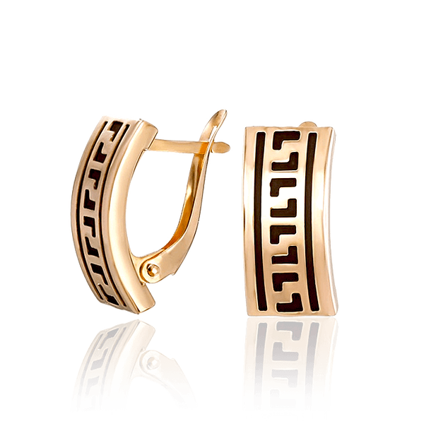 Присмотритесь, как четко на этих серьгах угадывается орнамент «меандр» (соединенная непрерывная лента прямоугольных звеньев), словно сошедший с керамических предметов Древней Греции. Он символизирует вечное движение и крепость уз, донося до нас историю запыленных архивных артефактов. Этот орнамент часто используют ювелиры, считая его таинственным и загадочным. Застежка- английский замок этих серег прекрасно сочетается с дизайном, а красное золото, из которого они изготовлены, подчеркивает их благородство. Царствование, сила и власть угадывается в дизайне этих украшений, как напоминание о далеком и таинственном прошлом.
