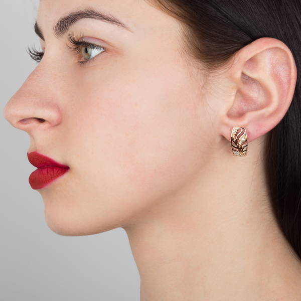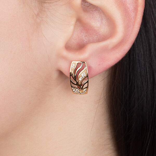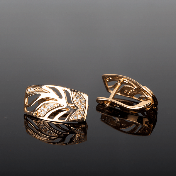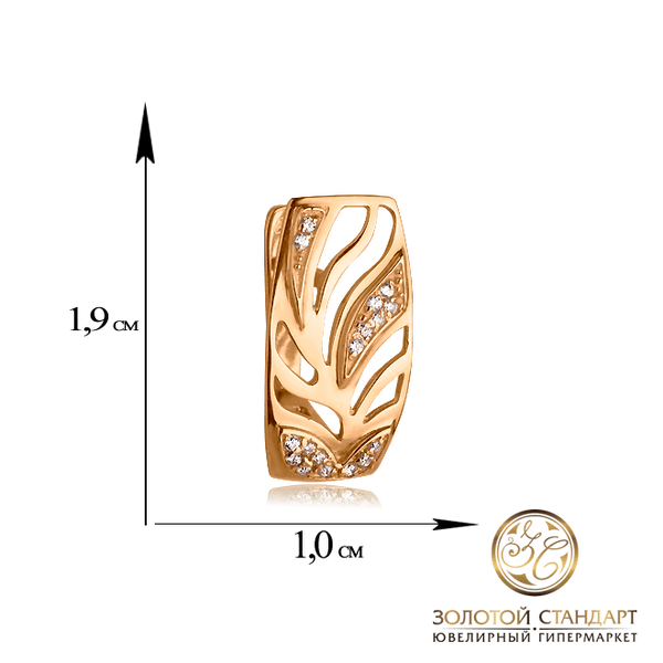 Эти золотые серьги - хорошее предложение для прекрасных дам. Посмотрите на данное ювелирное украшение на нашем сайте и делайте выбор в его пользу. Вашему вниманию представлены серьги из высококачественного красного золота 585 пробы. Изысканность изделия подчёркивает его оригинальная форма и вставки из блестящих камней циркония. Такие серьги будут элегантно смотреться с высокой причёской, подчёркивая прекрасный овал Вашего лица. И, конечно же, подойдут к повседневной одежде, деловому костюму и шикарному вечернему платью. Женщины с таким украшением обязательно будут притягивать восхищенные взгляды многих мужчин. Приобретайте данное изделие на нашем сайте, и в нем Вы будете всегда просто обворожительны.