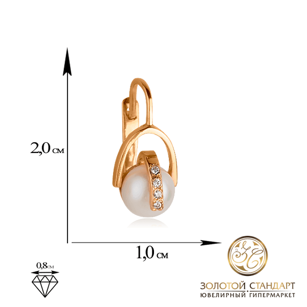 Золотые серьги с жемчугом и фианитами на английском замке 522910