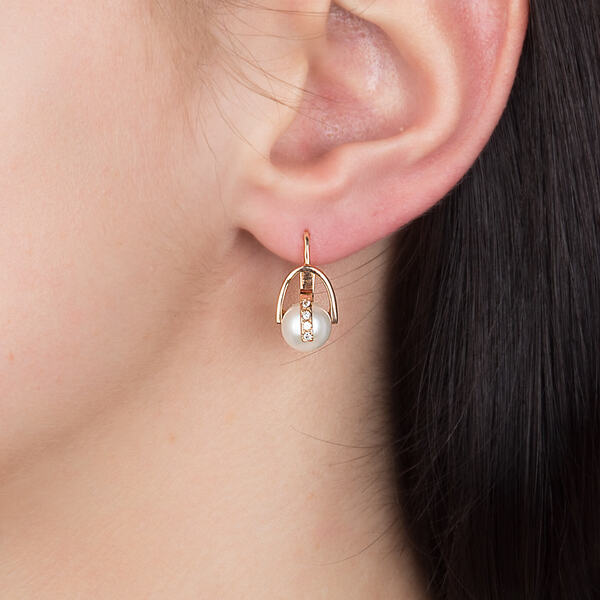 Именно изделия из жемчуга делают женщину женщиной. В них каждая представительница прекрасной половины человечества выглядеть романтично и нежно. Особенно хорошо изделия из жемчуга носить в дополнение к вечерним платьям. Женщину в таком украшении, как это, сложно забыть. Она будет выглядеть неотразимо в нем всегда. Выполнены эти замечательные серьги, которые вы имеете возможность видеть сейчас перед собой на фото нашего сайта, из высококачественного красного золота 585 пробы. Круглый камень светлого жемчуга расположен на внешней стороне изделия. Кроме того эти серьги дополнены тремя сверкающими циркониями. А фиксируется данное изделие английским типом замка.