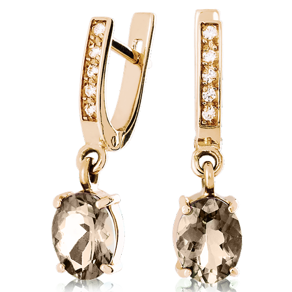 От блеска этих волшебных золотых серег кружится голова. Не удивительно, ведь насыщенные, теплые, солнечные переливы качественного красного золота 585 пробы в сочетании с глубокими металлическими красками магического раухтопаза создают просто невероятное мерцание, которое особенно привлекательно смотрится в свете огней вечернего города. Две небольшие овальные вставки удивительного самоцвета будут выглядеть элегантно, эффектно, но в то же время сдержанно и изысканно. С таким украшением можно ходить как в офис каждый день, так и в особые праздники на вечеринки. Английский замок и цена серег – это явные преимущества этого поистине уникального изделия.