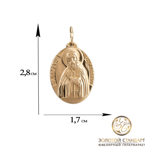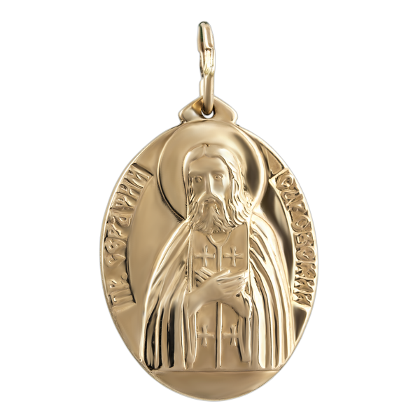 Этот золотой подвес просто незаменимый подарок для каждого друга, близкого и родственника по имени Серафим. Если же судьба не свела вас ни с кем по имени Серафим, не расстраивайтесь, ведь он станет бесценной частью каждого дома и каждого своего владельца. Утонченный подвес сделан из красного золота 585 пробы, с вылитым на лицевой стороне подвеса изображением Святого Серофима со Священным Писанием в руках. Подвес станет вашим неотъемлемым оберегом и будет приносить не только удачу, но и невидимую силу, которая будет толкать вас вперед, к вершинам и желаниям, к целям и мечтам. К тому же он будет выгодно подчеркивать красоту вашей шеи, привлекая к ней внимание и восхищение.