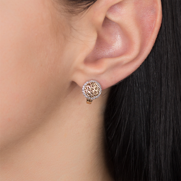 Изделие выполнено из чистого золота 585 пробы, внешняя сторона имеет круглую форму и украшена вставкой с мерцающими циркониями. Мимо девушки в таких сережках просто нельзя будет пройти, не обернувшись ей в след.