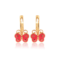 Детские золотые серьги Бабочки с розовой эмалью 028895