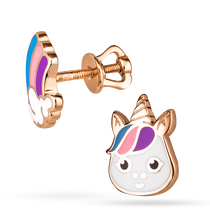 Золотые детские серьги-гвоздики Единорожка и радуга 040067