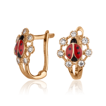 Золотые детские серьги Божья коровка на английском замке с фианитами и эмалью 025978
