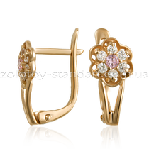 Детские золотые серьги Клубнички с белыми фианитами 027624