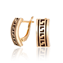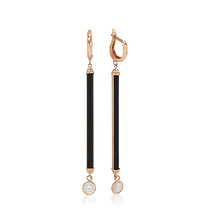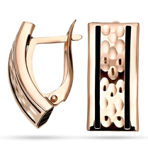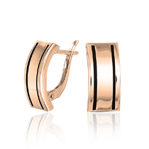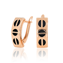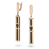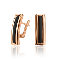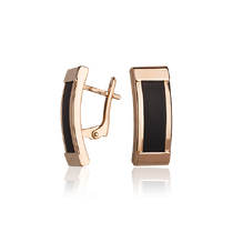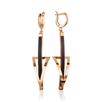 Золотые серьги в геометрическом стиле с каучуком и фианитом 031752