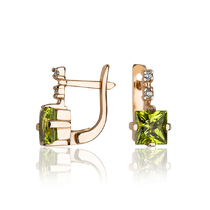 Золотые серьги с квадратным хризолитом 031910