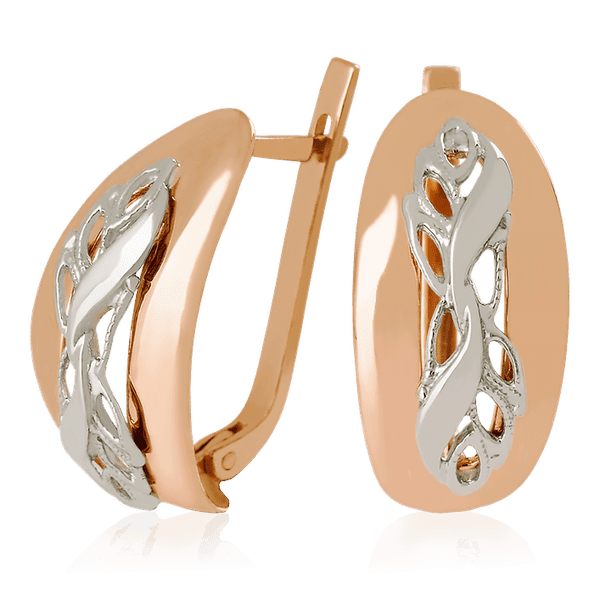 На фото перед вами изображены золотые серьги с фантазийным узором, которые не могут не понравиться своей оригинальностью и экстравагантностью. Данное украшение выполнено из красного золота, однако в центре цветочный узор выполнен из белого золота. Эти необычные серьги привлекают внимание к замысловатому дизайну и сделают их обладательницу самой яркой и нетривиальной девушкой. Такое украшение будет уместно смотреться с повседневной одеждой, а также оно добавит в строгий деловой образ лёгкость, весеннюю свежесть и романтичность. Чтобы быть непохожей на других, достаточно купить эти чудесные золотые серьги!