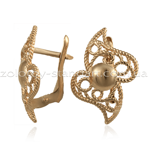 Замысловатая вязь хитросплетения из золотой проволоки, филигранно обвившая яркий круглый выпуклый сегмент шара в центре поразительной композиции из драгоценного металла – аксессуар просто сногсшибательный! Эксклюзивный и уникальный наверняка! Дизайнер вложил в него все мастерство, воплотил все искусство, которым владеет, чтобы обладательница могла с радостью царить на собственных именинах, на пафосном светском рауте или в строгих университетских аудиториях! Купить золотые серьги такого необычайного дизайна – большая удача! С огромной долей вероятности они везде будут действительно единственны и неповторимы!