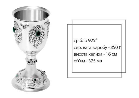 - срібний бокал 925 проби має вишуканий дизайн, прикрашений рельєфними візерунками