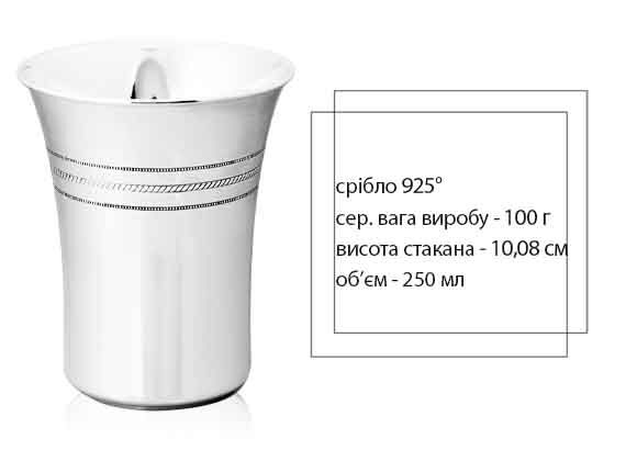 - такий срібний стакан може використовуватися як для щоденного вжитку, так і для особливих випадків. Він стане чудовим доповненням до будь-якого святкового столу або ексклюзивним подарунком для цінителів красивого посуду