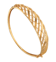 Жёсткий браслет – это стильный аксессуар, который украсит изящное девичье запястье и будет приковывать восхищённые и заинтересованные взгляды. Данное украшение выполнено из качественного красного золота 585 пробы и украшено лёгким ненавязчивым узором. Изделие состоит из двух полукругов, соединённых незаметной застёжкой. Этот замечательный подарок порадует девушку и не сможет не понравиться.