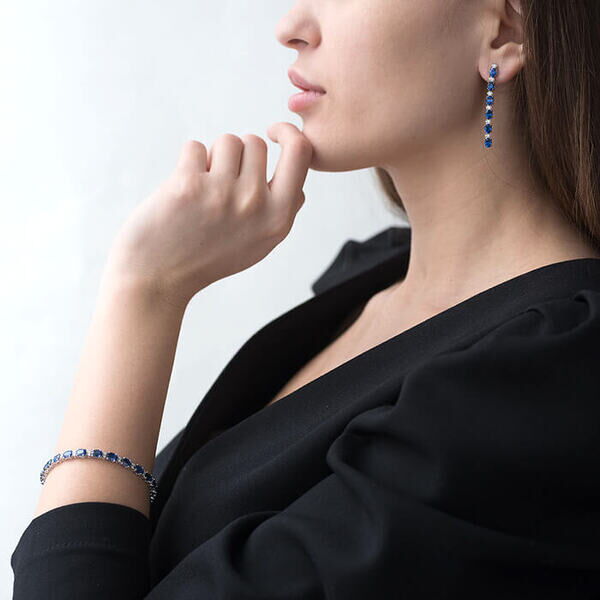 Женственный браслет с сапфирами и бриллиантами изготовлен из золота 750-й пробы. Родированное покрытие придает поверхности оригинальный цвет и особенный блеск. Препятствует возникновению аллергических реакций и делает его совершенно безопасным даже для людей с чувствительной кожей. Слой родия, который наносится на женские браслеты золотые, защищает драгоценный металл, обеспечивает повышенную устойчивость к механическому воздействию и негативным внешним факторам.