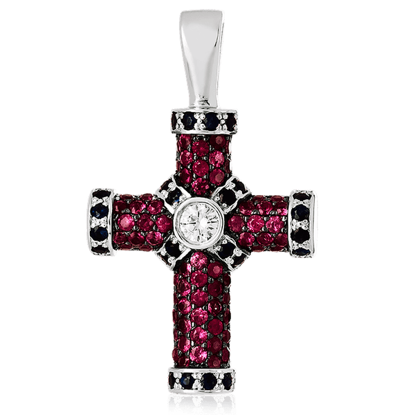 Этот золотой крестик из белого золота 585 пробы нельзя отнести к классической форме православного украшения, ведь он просто горит огнем от россыпи малиновых рубинов умело окруженных белыми и черными кристаллами. Золотая подвеска с рубином прекрасно смотрится на тонкой шее, поверх белой одежды либо в качестве дополнения к элегантному костюму. Не стоит сомневаться, что она будет в восторге от такого рода подарка, который пропитан роскошью, красотой, благородством. В нашем интернет-магазине Вы сможете купить золотую подвеску с рубином, которая станет выгодной и приятной покупкой как для себя, так и в качестве подарка.