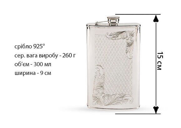 Рады видеть Вас в ювелирном магазине Zolotoy Standart. В каталоге магазина Вы можете приобрести Серебряная фляга 024301 и золотой браслет на руку с доставкой в короткий срок в Северодонецк и по другим уголкам страны. Также на сайте представленыи другие ювелирные изделия, например - крест золотой мужской, длинные серьги золотые по лучшей стоимости. Обращаем внимание, что купить цепочки из белого золота можно оставив заявку на сайте.