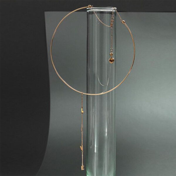 Жёсткое колье в красном золоте с подвеской Love 032026