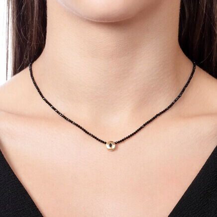 Золотое колье с черным агатом смотрится стильно и оригинально за счет удачного сочетания разных концепций - этнической и современного минимализма. Шелковистый блеск агатовых бусин подчеркивает благородную роскошь красного золота, создавая универсальный аксессуар, который идеально смотрится вечером, но так же удачно дополняет дневные модные образы. Агатовое ожерелье с золотой подвеской можно носить в качестве единственного акцента или сочетать с сережками, инкрустированными черным агатом.