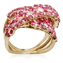 Обводы кольца выполнены из золота 585 пробы нежного красноватого оттенка.
