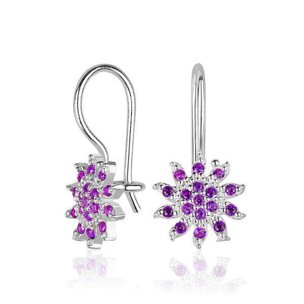 Каратность Серебряные серьги детские на петельке цветочки с фиолетовыми фианитами 037596