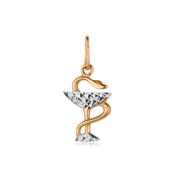 Затейливый золотой подвес – символ медицины. В греческой мифологии такой знак олицетворял богиню Гигею. Ее изображали в виде молодой красивой женщины, которая кормит из чаши змею. Эти атрибуты - чаша и змея - составили современный символ медицины, ставший традиционным. Прекрасный подарок для тех, кто уже посвятил себя медицине или только мечтает стать врачом.