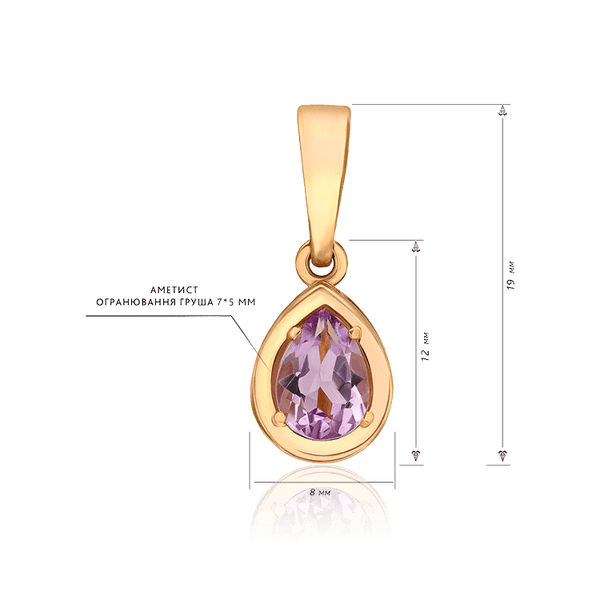Золотой кулон Капля с аметистом 036444