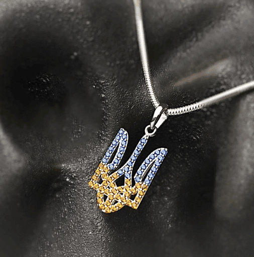 Серебряный подвес желто-голубой с фианитами Тризуб 037692 в каталоге товаров Золотой Стандарт