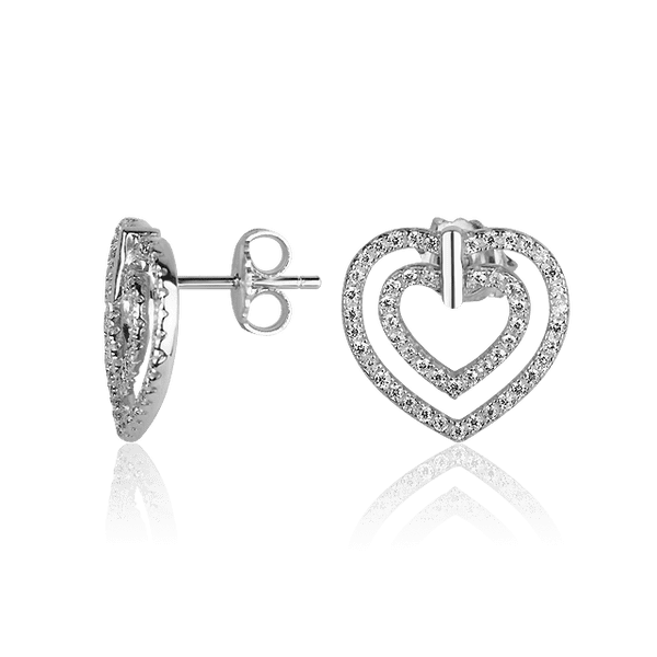Серебряные серьги-гвоздики Сердца с фианитами 027378 в каталоге товаров Золотой Стандарт