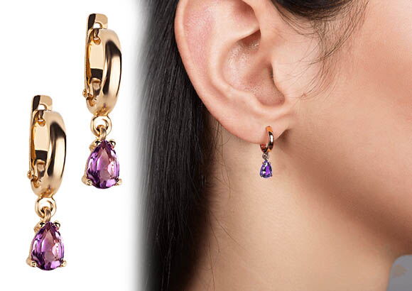 - аметист має насичений фіолетовий колір, що створює яскравий акцент і робить сережки виразними