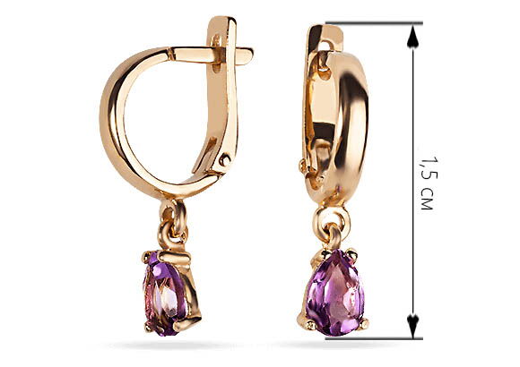 Золотые серьги Капельки с аметистом 029746 в стильном дизайне