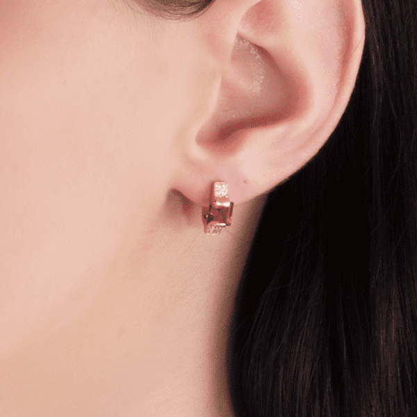 Золотые серьги с гранатов выполнены из красного золота 585 пробы. Лицевая сторона этого замечательно изделия декорирована квадратными вставками граната и украшена мерцающими циркониями. Сережки будут эффектнее выглядеть в вечернее время суток, так как камни будут загадочно мерцать во тьме.