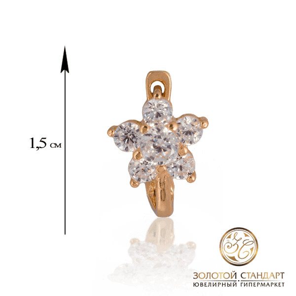 На нашем сайте ювелирного магазина Вы найдете большой выбор золотых сережек для детей, которые помогут придумать и выбрать подарок для своего или близкого ребенка. Разнообразный каталог золотых серег позволит подобрать именно то украшение, которое подойдет Вашему ребенку по настроению и характеру. Например, эта милая пара золотых серег выполнена из красного золота 585 пробы. В качестве вставок использован белый циркон, кристаллы которого сложились в виде распустившегося фантастического цветка. Подобные серьги смотрятся в ушах очень нежно и утонченно, ярко поблескивая на солнце.