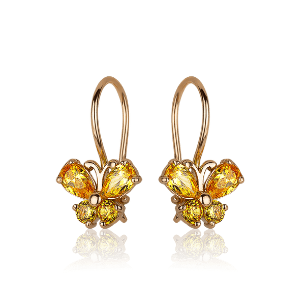 Золотые серьги Бабочки с желтыми фианитами 030483 - элегантность в каждом выборе