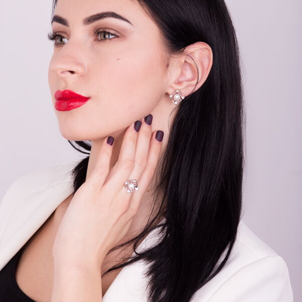 Что может быть более элегантным, утонченным, нежели украшения на уши, изготовлены из белого золота 585 пробы? Только серьги, дополнены нежным, утонченным жемчугом, гармонично вставленные в изделие. Сережки имеют довольно-таки необычный ободок, который внутри заполнен красивой решеткой, посередине которой находится жемчуг, а по краям – сияющие бриллианты. Дизайн завершает английский замок, который отличается надежностью и прочностью.
