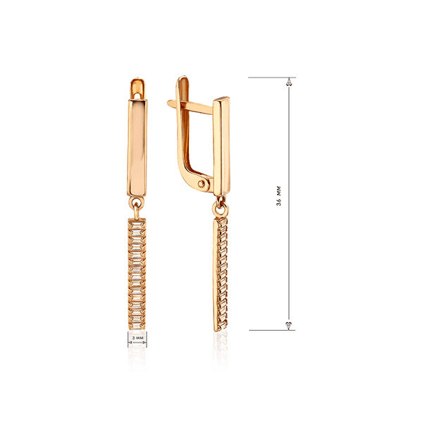 - сережки складаються з витончених підвісок прямокутної форми, прикрашених безбарвними фіанітами