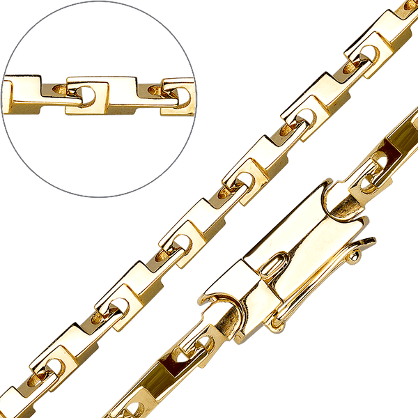 Фантазийное плетение в ювелирных цепях всегда завораживает формой и игрой света. Эта прочная цепочка с необычным геометрическим плетением изготовлена из желтого золота 585 пробы. Угловатые звенья и надежный замок – это великолепная ручная работа из благородного металла. Полновесная золотая цепочка в оригинальном дизайне станет стильным аксессуаром для завершения вашего модного образа.
