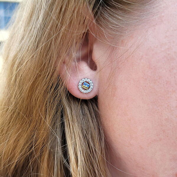 Серебряные серьги гвоздики (пуссеты) Стефания с жёлто-голубыми фианитами флаг Украины 037274